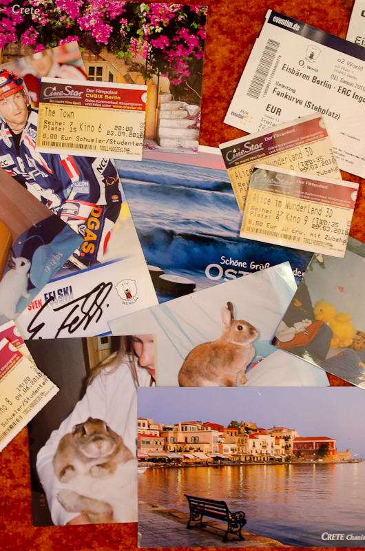 Nach der Zeugnisausgabe ging es sofort nach Hause um die Ruhe zu genießen und mich zu pflegen, aber als ich dann in mein Zimmer kam, war ich nicht mehr der Meinung, dass ich mich pflegen sollte. Da ich in letzter Zeit ein begeisterter Nähfreund in der Gemeinde bin, lag das ganze Zimmer voller Stoffe, Nadeln und Schnittmuster. Mitunter lag auch mal das ein oder andere T-Shirt, ein paar Flip-Flops und andere Papiersachen überall verteilt. Es gab auch nur einen Weg – und der führte ins Bett. Also musste ich mich nun dazu zwingen, das ganze Zimmer begehbar zu machen. Mit etwas Neugier entrümpelte ich sogar meine Schränke in der Hoffnung, ich würde etwas wieder finden, was ich schon seit ewiger Zeit suche. Soweit kam es nicht, aber ich fand immer wieder in irgendwelche Ecken Erinnerungen an die Grundschule, an alte Freunde und Erlebnisse, die im Kopf zwar immer bleiben, aber es auch schön ist, wenn man doch etwas Handfestes hat. So fand ich zwei Fotos von meinen zwei alten Kaninchen, die beide verstorben sind. So ließen mich die Bilder nochmal in die Zeit zurück zu meinen zwei Hasenkindern. Nach einiger Zeit kramte ich weiter und fand meine ganzen Eisbärsachen, die ich in den vergangenen 4 ½ Jahren gesammelt habe. Leider fehlt mir einfach die Zeit um meine Glücksbären anzufeuern. Kaum machte ich die nächste Schranktür auf, fielen mir Briefe, Fotos und Postkarten entgegen. Einige sind von den Liebsten, die andere von Leuten, denen ich egal geworden bin. Aber letztendlich haben alle Sachen etwas gemeinsam – sie erinnern mich an Zeiten, in denen ich glücklich war. Und zu oft habe ich lächeln müssen, da ein kleiner Flashback im Kopf ablief und ich danach doch zu Stupsi sagen musste, dass es jetzt genauso schön ist, wie früher auch. Ereignisse, die in der Vergangenheit geschehen sind, sollten auch dort bleiben, sage ich immer so schön. Also legte ich dann die Fotos etc. in meine Erinnerungskiste und legte den Deckel drauf und habe für ein weiteres Jahr kein großes Bedürfnis, alles wieder herauszukramen.